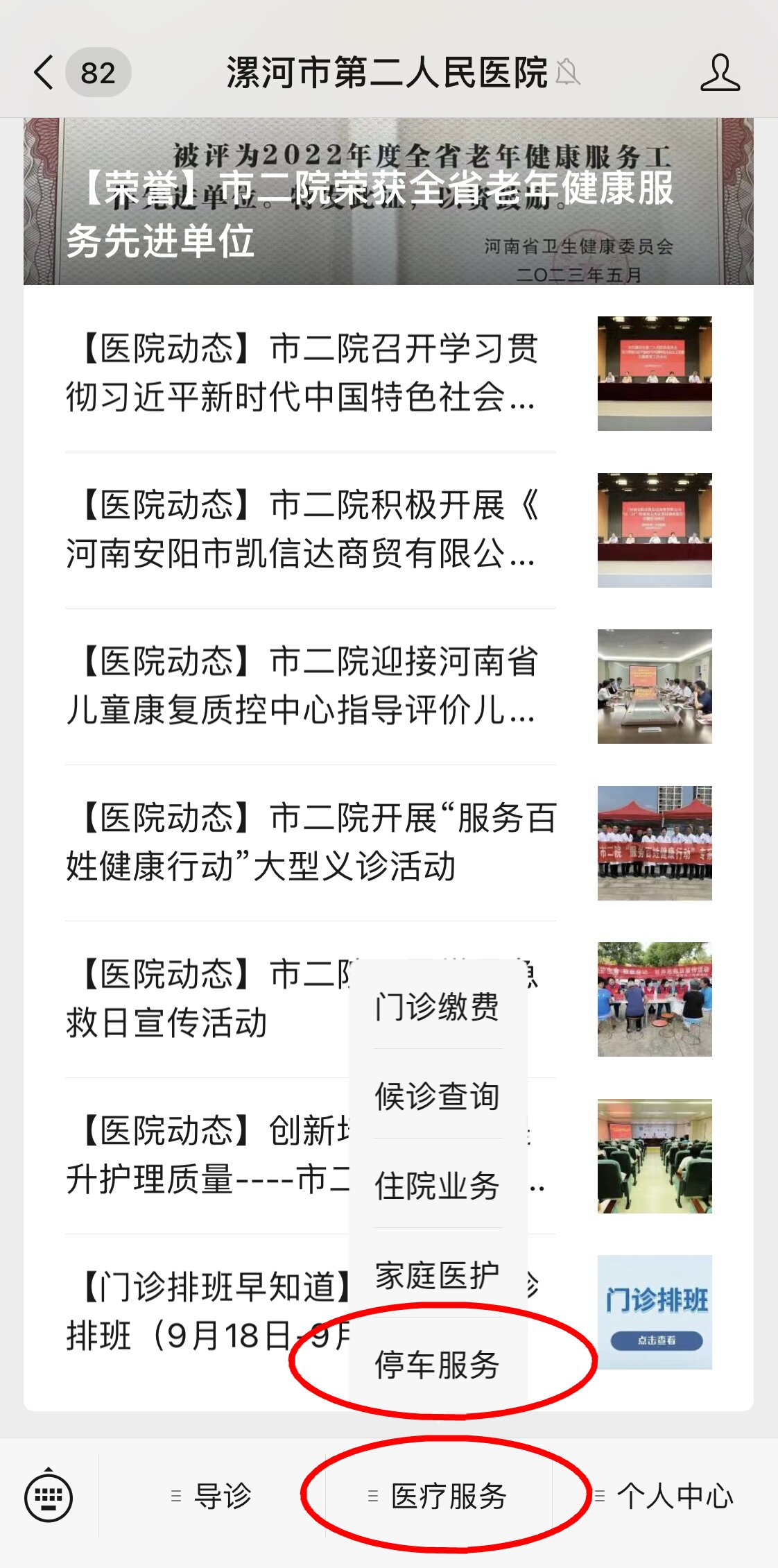 02.下滑點擊“醫(yī)療服務(wù)”--“停車服務(wù)”