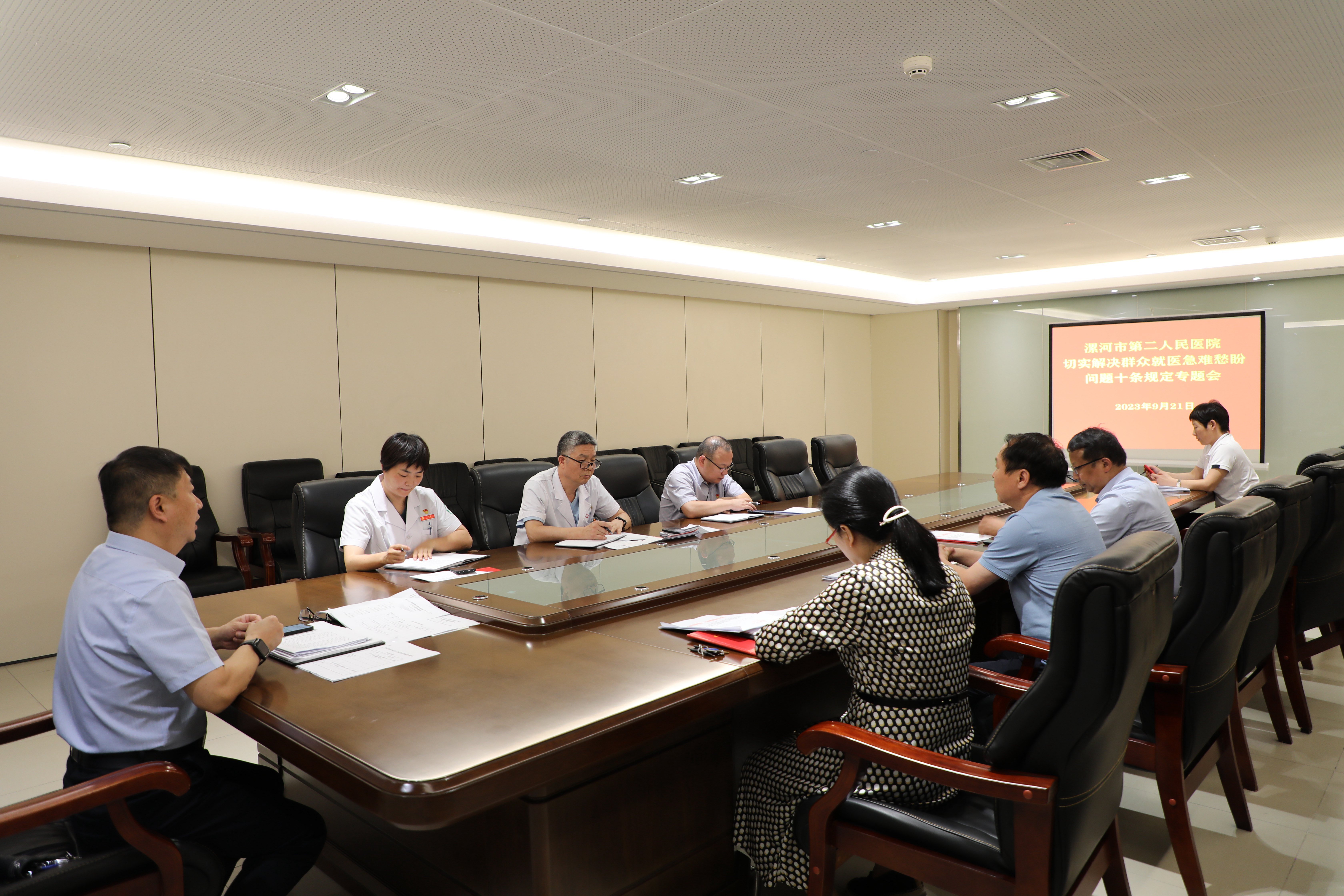 為持續(xù)深入推進(jìn)“ 改善就醫(yī)感受,提升患者體驗(yàn) ”六聚焦六提升行動,切實(shí)為群眾辦實(shí)事 、解難題,打通人民群眾看病就醫(yī)的堵點(diǎn)淤點(diǎn)難點(diǎn),進(jìn)一步增強(qiáng)人民群眾就醫(yī)獲得感、幸福感、安全感 。9月21日下午,市二院召開切實(shí)解決群眾就醫(yī)急難愁盼問題十條規(guī)定專題會。黨委書記魏松、院長王瑾等領(lǐng)導(dǎo)班子成員及職能科長參加了本次會議。