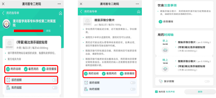 小程序同時具備語音播報、看圖用藥、服藥提醒等功能,可滿足老年人、視障人士等不同人群的個性化需求。醫(yī)院也可利用官方微信公眾號、小程序等平臺向患者推送用藥指導(dǎo)信息,為患者提供用藥教育、用藥科普等服務(wù),指導(dǎo)督促患者規(guī)律服藥。