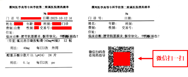 廣大患者朋友請注意,藥師發(fā)給您的擺藥清單上的二維碼可以用微信掃碼查看用法用量,注意事項,有不懂的地方可以隨時咨詢藥師。