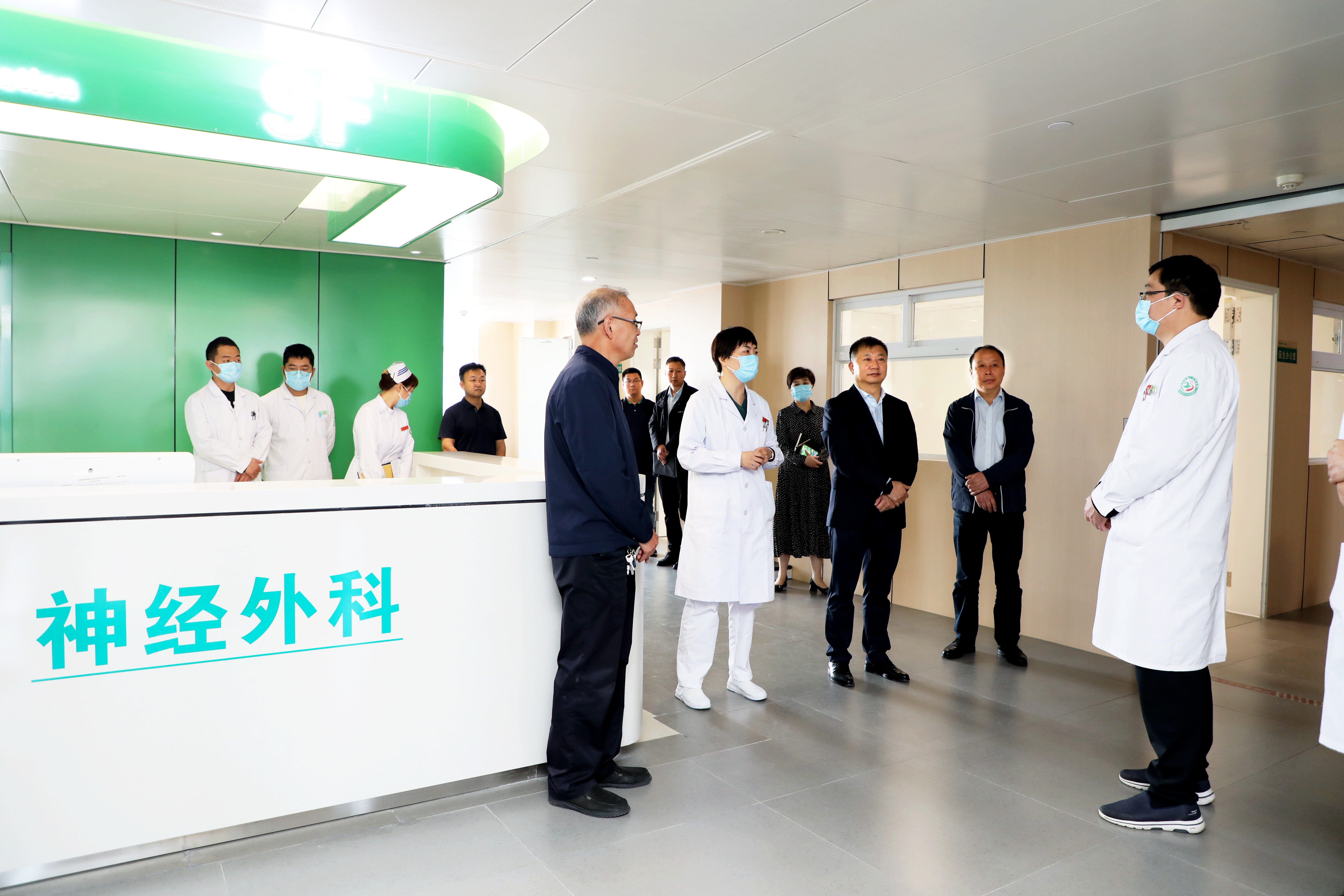 當天上午,市二院黨委書記魏松、院長王瑾攜班子成員帶領(lǐng)相關(guān)職能科室人員,到2號樓9樓神經(jīng)外科新病區(qū)查看科室搬遷和物資、設(shè)備設(shè)施配備運轉(zhuǎn)情況,同神經(jīng)外科全體醫(yī)護人員親切合影,勉勵大家在新的平臺跑出專業(yè)發(fā)展新的加速度。