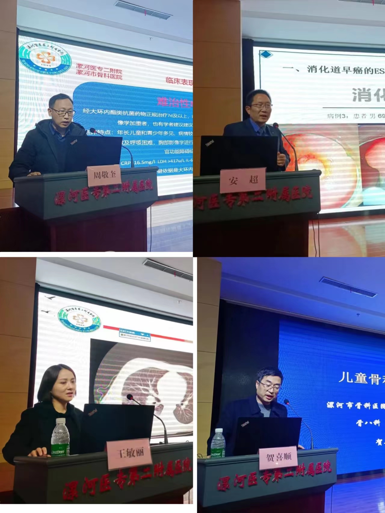 培訓(xùn)會上,呼吸內(nèi)科周敬奎主任、消化內(nèi)科(內(nèi)二科)安超主任、兒科王敏麗主任、小兒骨科(骨八科)賀喜順主任分別就《支原體肺炎的診治》《消化內(nèi)科內(nèi)鏡下前沿技術(shù)匯報》《兒童肺炎支原體肺炎診療指南解讀》《兒童常用霧化藥物介紹及誤區(qū)》《小兒骨科基本知識》進行精彩分享。