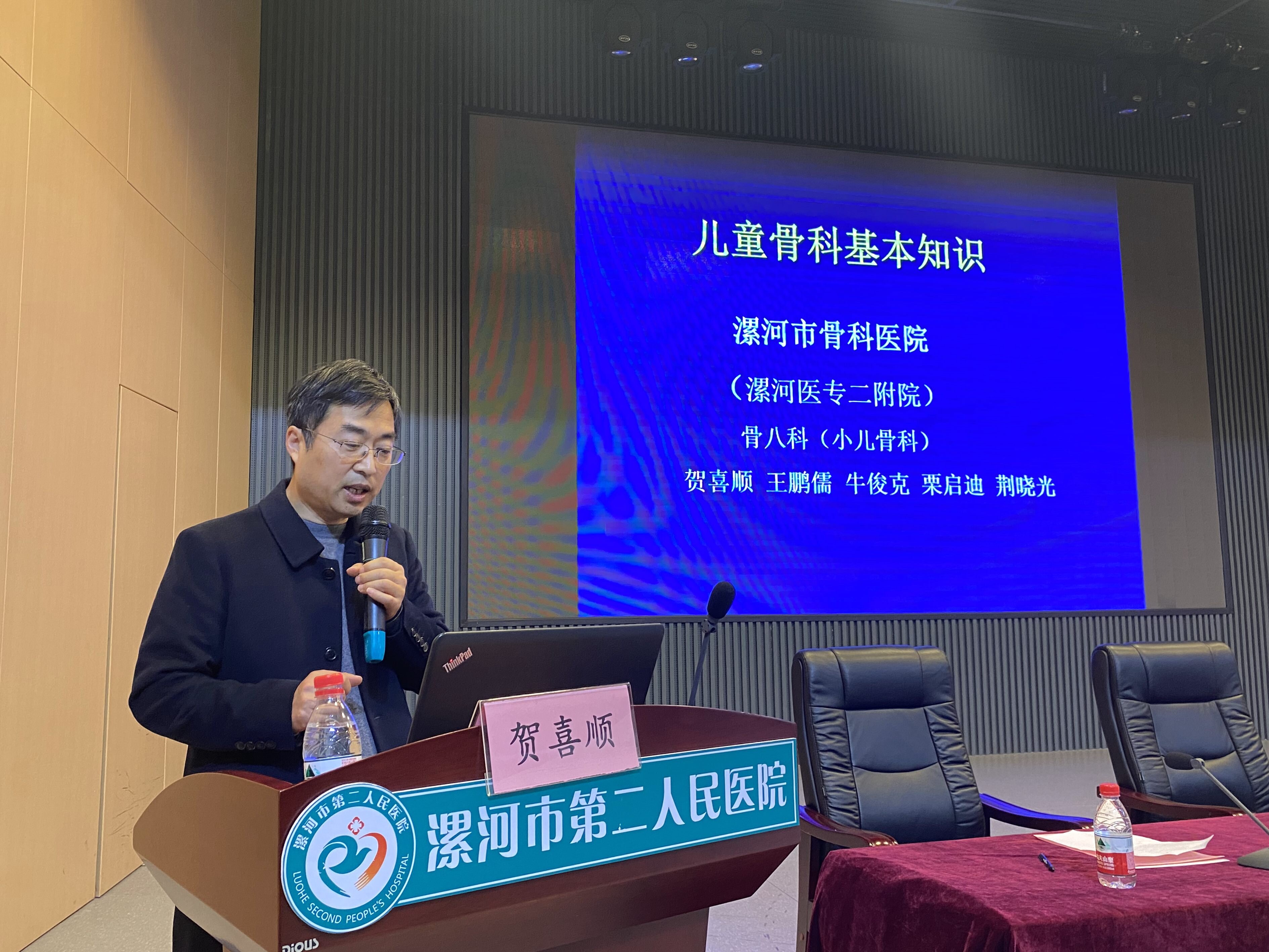 市骨科醫(yī)院小兒骨科主任賀喜順主任通過 《小兒骨科的基本知識(shí)》的授課講述了兒童骨骼的發(fā)育特點(diǎn),向大家詳細(xì)說明了小兒骨科和成人骨科的異同。