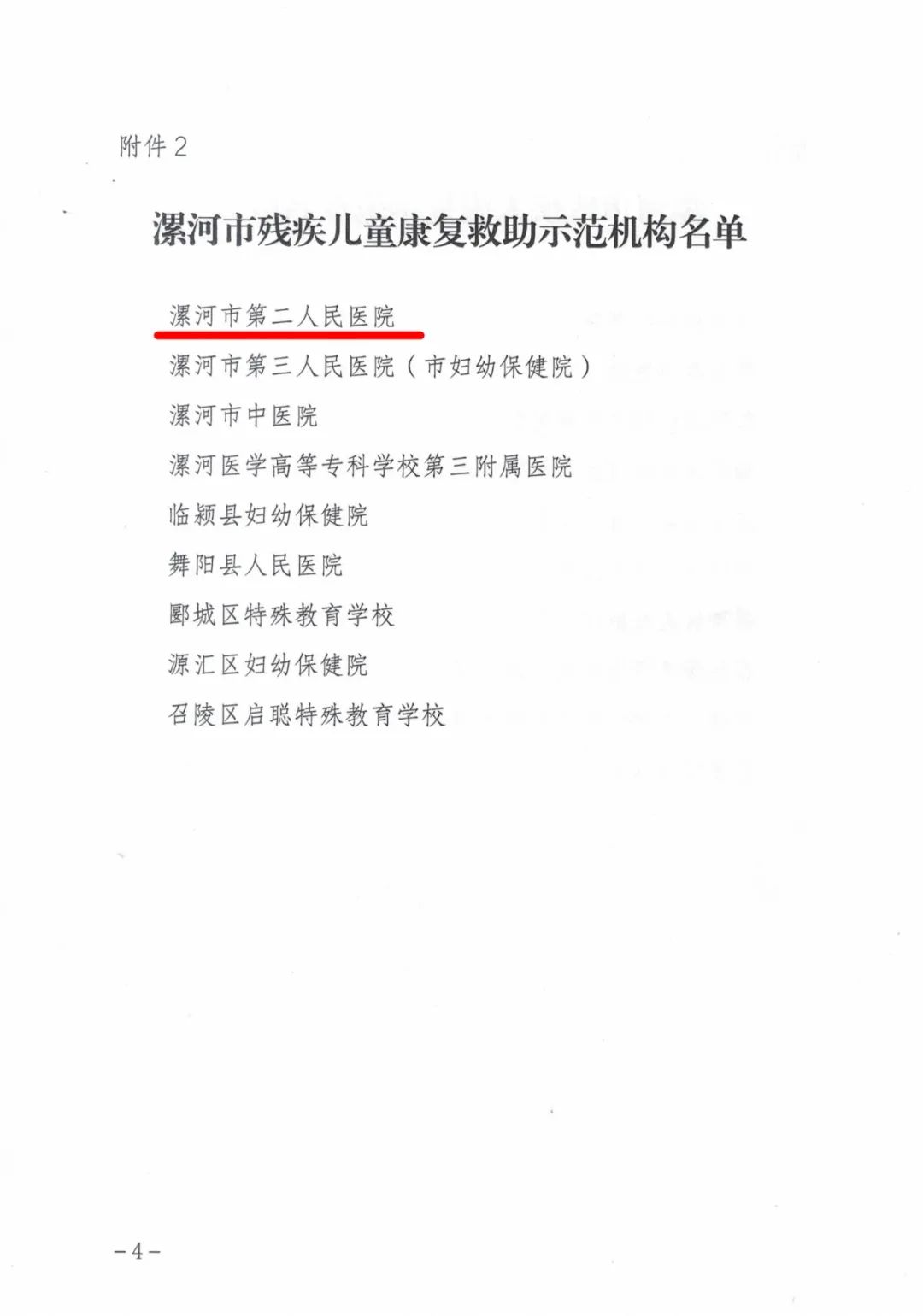 11月21日,根據(jù)《關(guān)于開(kāi)展漯河市殘疾人康復(fù)示范點(diǎn)和殘疾兒童康復(fù)救助示范機(jī)構(gòu)創(chuàng)建活動(dòng)的通知》要求,經(jīng)機(jī)構(gòu)自薦申請(qǐng)、市殘聯(lián)復(fù)審等各環(huán)節(jié)工作,市二院被漯河市殘疾人聯(lián)合會(huì)命名為市殘疾兒童康復(fù)救助示范機(jī)構(gòu)。