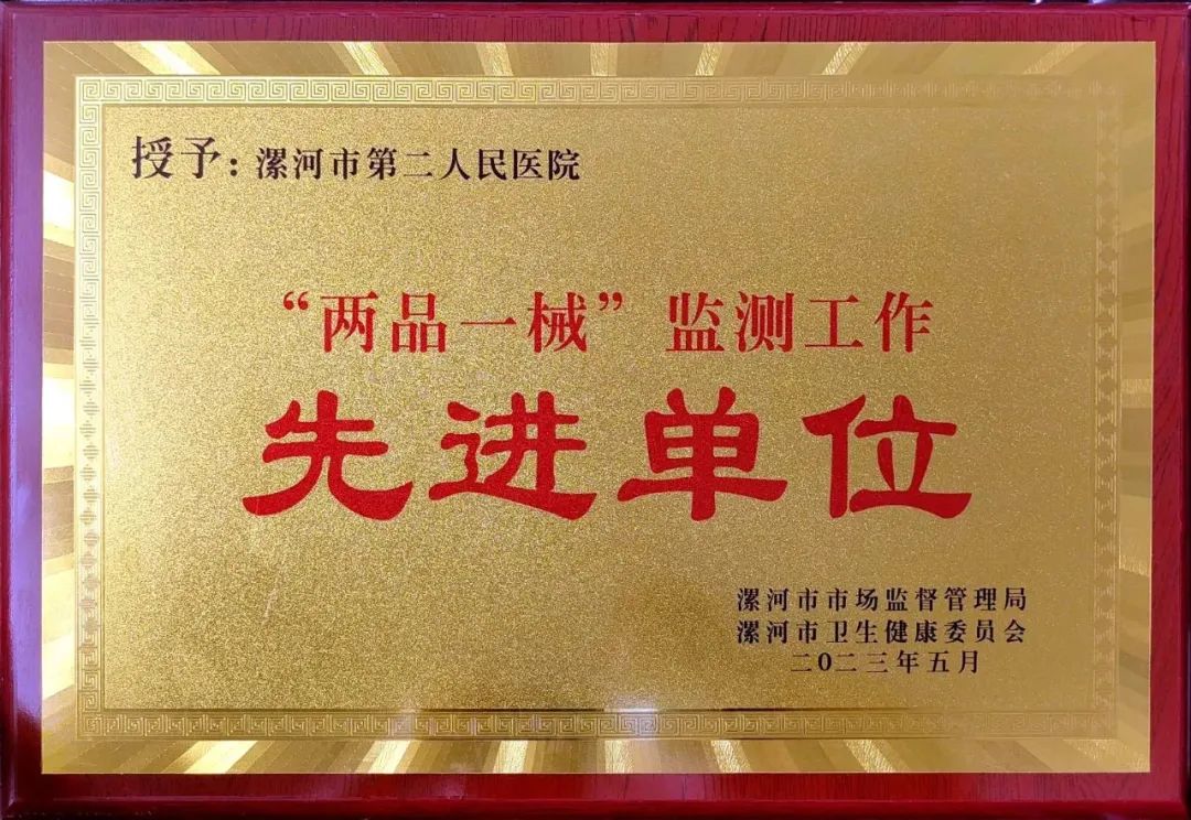 5月25日,市二院分別榮獲河南省2022年度“兩品一械”監(jiān)測(cè)工作先進(jìn)單位、漯河市2022年度“兩品一械”監(jiān)測(cè)工作先進(jìn)單位。