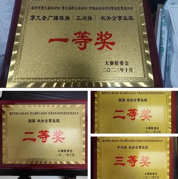 10月17日—21日,漯河市第九屆運(yùn)動(dòng)會(huì)、第七屆職工運(yùn)動(dòng)會(huì)、市直機(jī)關(guān)運(yùn)動(dòng)會(huì)暨全民健身大會(huì)在市體育中心拉開(kāi)帷幕,市二院代表隊(duì)團(tuán)結(jié)協(xié)作,奮勇?tīng)?zhēng)先,共選派64名隊(duì)員組成代表隊(duì)參加了七個(gè)大項(xiàng)九個(gè)小項(xiàng)比賽項(xiàng)目,一舉奪得第九套廣播體操(工間操)機(jī)關(guān)企事業(yè)組一等獎(jiǎng)、團(tuán)體總分二等獎(jiǎng)、優(yōu)秀組織獎(jiǎng),團(tuán)體及個(gè)人獎(jiǎng)等榮譽(yù)。