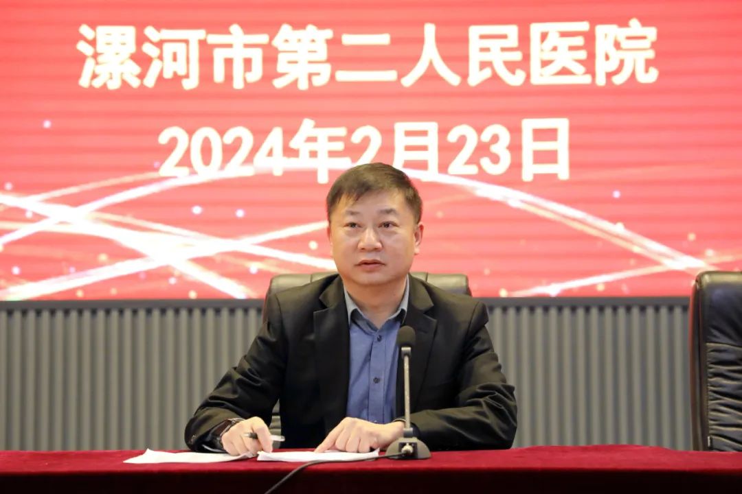 黨委書記魏松強(qiáng)調(diào),2023年,我們共同見證了醫(yī)院的成長(zhǎng)與變革,共同創(chuàng)造了醫(yī)院的歷史與輝煌,這充分展現(xiàn)了全體二院人的責(zé)任與擔(dān)當(dāng)。新的一年已經(jīng)到來,我們要從節(jié)日的喜慶氣氛中走出來,把時(shí)間和精力調(diào)整到工作中去,以更加飽滿的精神狀態(tài)投入到新一年的工作。我們要進(jìn)一步統(tǒng)一思想,共同努力,樹立“單項(xiàng)工作爭(zhēng)第一,整體工作創(chuàng)先進(jìn)”的決心,發(fā)揚(yáng)“跳起來摘桃子、跳起來當(dāng)標(biāo)桿”的爭(zhēng)先意識(shí)和“不折不扣抓落實(shí)、敢做善為抓落實(shí)”的實(shí)干精神,為醫(yī)院高質(zhì)量發(fā)展、為漯河“三城”建設(shè)做出積極的貢獻(xiàn)!