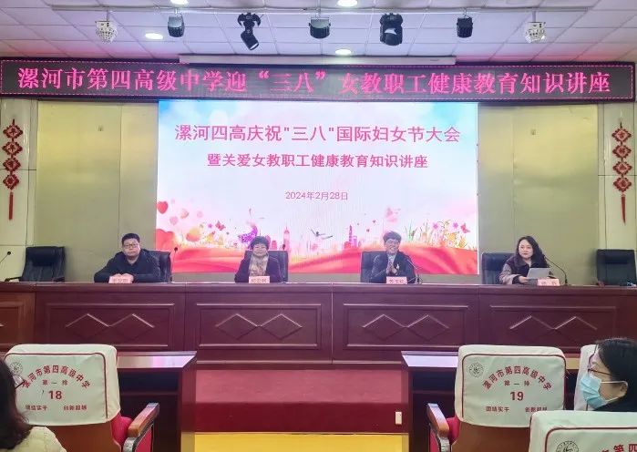 在三八婦女節(jié)來臨之際,為關愛女性健康,提高女性自我保健意識,增強疾病的防治能力,普及健康知識,應漯河市第四高級中學領導邀請,2月28日下午,在社會工作部韓書環(huán)主任的積極協(xié)調(diào)組織下,漯河市骨科醫(yī)院(漯河醫(yī)專二附院、漯河市立醫(yī)院)婦產(chǎn)科何宏舸主任、外三科李賀鵬副主任醫(yī)師到該校為近200名女教職工進行健康知識講座。