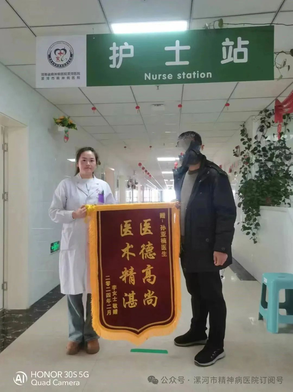 3月4日一大早,一名患者家屬懷著一顆無比感恩的心來到了漯河市精神病醫(yī)院精神四科,感謝我院孫亞南醫(yī)生及全體醫(yī)護人員,并送上一面錦旗,他的患者是一名在校學生,在家不出門,不與人溝通,緊張、害怕,嚴重影響到日常生活,不能正常上學,經(jīng)門診收住院,入院后,孫醫(yī)生耐心詢問患者的病情,根據(jù)患者的癥狀進行病情評估,制定了詳細的治療方案,通過一個多月的治療,患者癥狀明顯改善。能與人交流了,臉上也露出了久違的笑容。家屬對醫(yī)院的診療和服務(wù)水平非常滿意!