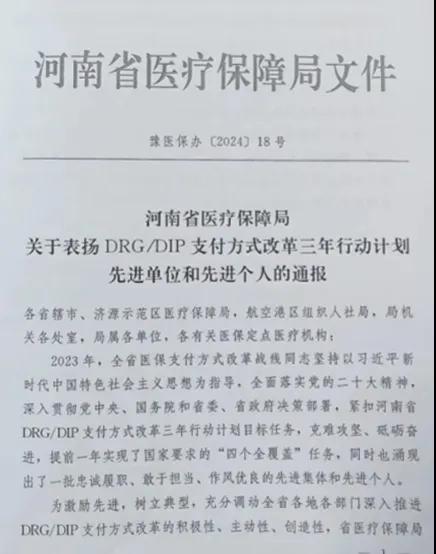 近日,在河南省醫(yī)療保障局公布的《關(guān)于表揚DRG/DIP支付方式改革三年行動計劃先進單位和先進個人的通報》中,漯河市骨科醫(yī)院(漯河醫(yī)專二附院、漯河市立醫(yī)院)被授予河南省DRG/DIP支付方式改革三年行動計劃先進單位。