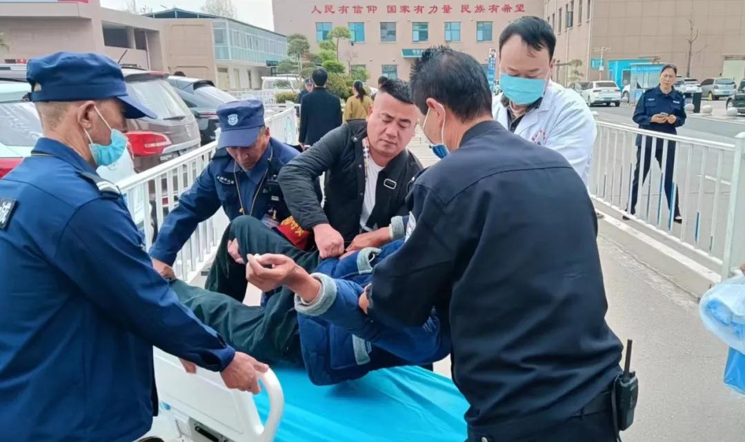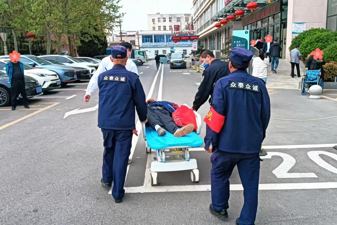 班長王收首先利用醫(yī)院保衛(wèi)科“點(diǎn)對點(diǎn)”的安保設(shè)置,通知急診醫(yī)學(xué)科駐點(diǎn)的安保人員,及時與急診醫(yī)務(wù)人員取得聯(lián)系;同時,安保隊(duì)員李文超等人迅速趕到,幫助急診科住院醫(yī)師王英杰一起,將平車推往現(xiàn)場;聞訊趕來的賈俊杰隊(duì)長冷靜指揮,多名隊(duì)員合力將患者搬上了平車,并迅速轉(zhuǎn)移至急診搶救室。