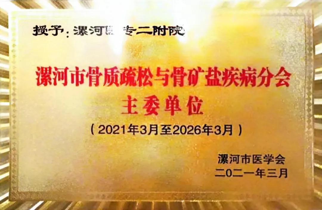 4月15日上午,漯河市骨科醫(yī)院(漯河醫(yī)專二附院、漯河市立醫(yī)院)舉行骨質(zhì)疏松診療中心授牌儀式。該中心旨在為廣大患者提供更專業(yè)、更全面的骨質(zhì)疏松診斷、治療和預(yù)防服務(wù),進一步提高市民對骨質(zhì)疏松的認識和防治意識。