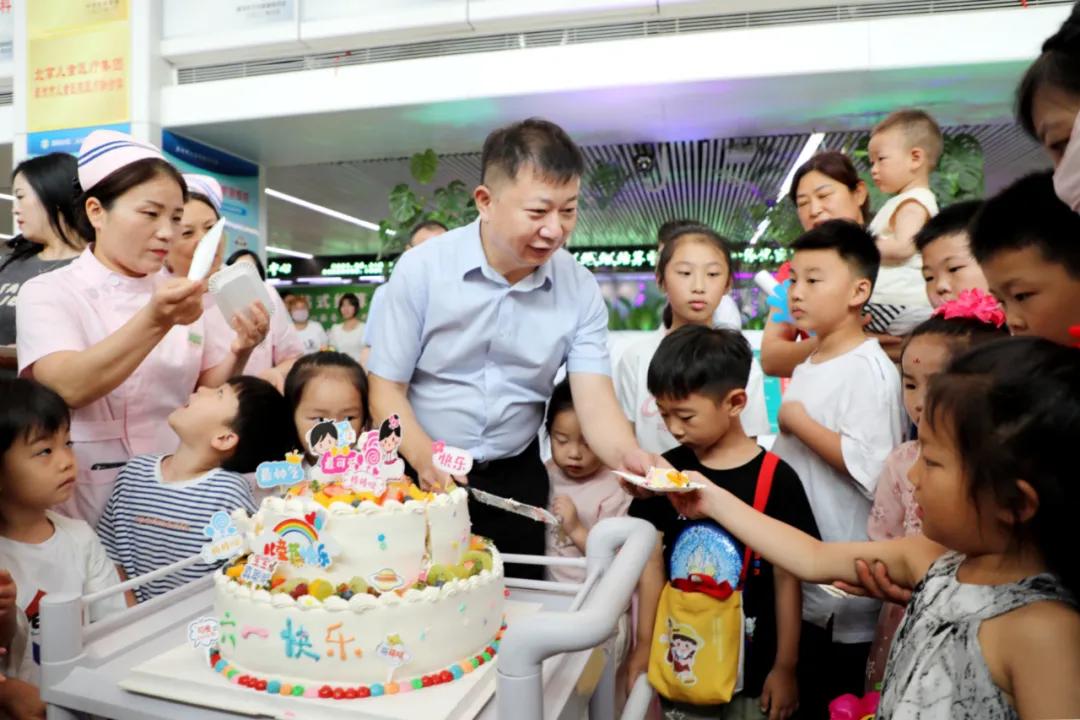 在門診大廳,黨委書記魏松、院長王瑾與兒科專家、護(hù)士長、孩子們一起切下節(jié)日蛋糕,并代表全院醫(yī)護(hù)人員對(duì)孩子們表示衷心的祝福,希望孩子們健康快樂成長?,F(xiàn)場,醫(yī)護(hù)人員化身白雪公主、花仙子、小黃人、網(wǎng)紅青蛙與小朋友們熱情互動(dòng),友好交流,派發(fā)精心準(zhǔn)備的節(jié)日禮物。