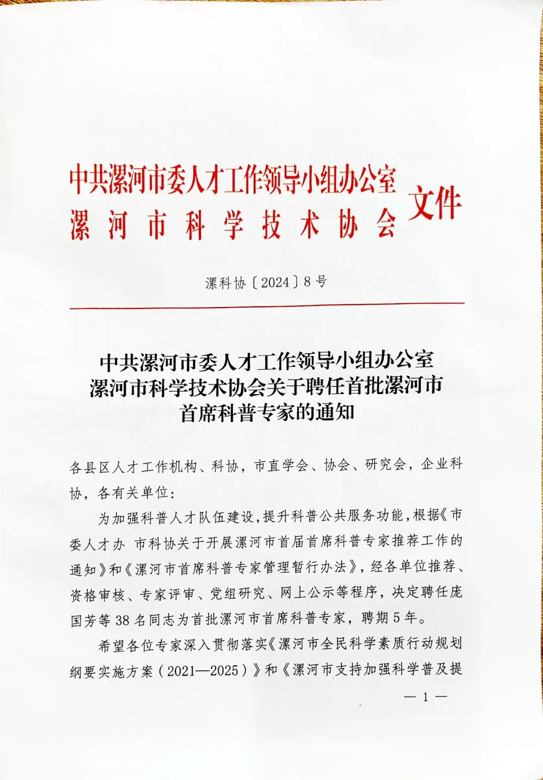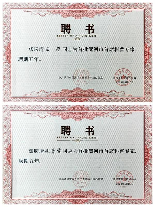 現(xiàn)場(chǎng),公布了首批聘任的38名漯河市首席科普專家名單,市二院院長(zhǎng)、心血管內(nèi)科主任醫(yī)師王瑾與中醫(yī)科主任、主任醫(yī)師朱青霞,被聘為漯河市首批首席科普專家。