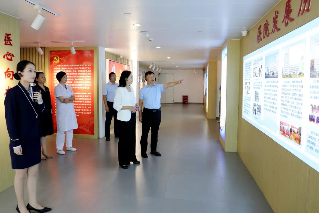 市衛(wèi)健委副主任、三級調(diào)研員于宏在聽取市二院近幾年發(fā)展情況介紹后,先后來到一站式服務中心、兒科門診、內(nèi)科門診、兒童保健門診、皮膚科、中醫(yī)針灸科、黨建綜合體“正德堂”等地,了解醫(yī)療服務、便民就醫(yī)開展情況及基礎建設、文化建設、學科建設等情況,聽取了院長王瑾關于醫(yī)院發(fā)展狀況、學科建設、人才培養(yǎng)等工作的情況匯報。