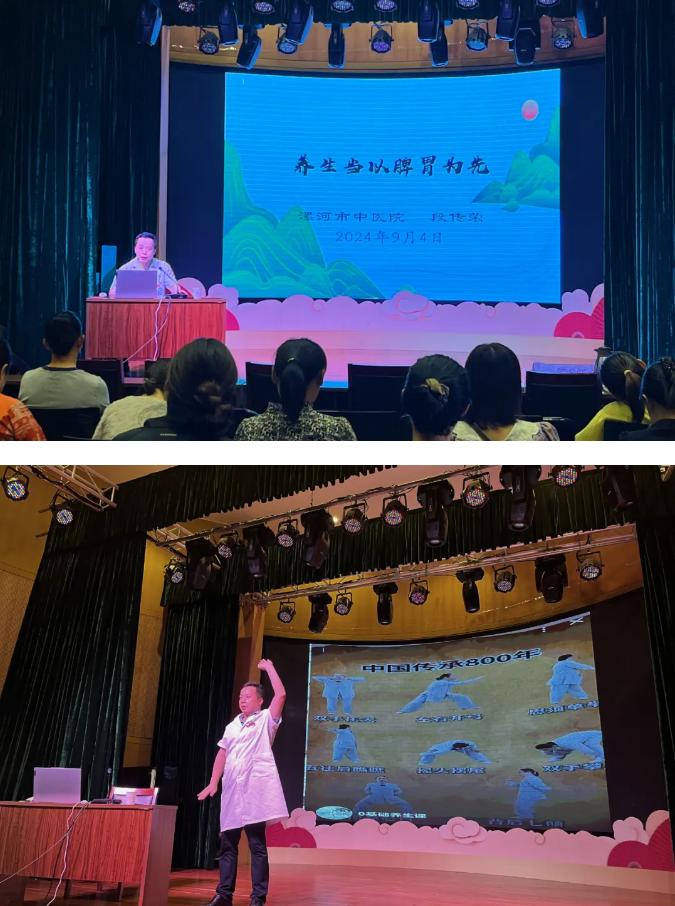 在市文化館,市中醫(yī)院健康宣講團段傳榮主任就“養(yǎng)生當以脾胃為先”為題,針對中醫(yī)養(yǎng)生的好處、養(yǎng)生為什么要先養(yǎng)脾胃、什么食療對應(yīng)什么問題等方面做了詳細的講解;指出常見的脾胃疾病預(yù)防和調(diào)理方法,包括合理的飲食搭配、規(guī)律的作息時間、適度的運動以及情志的調(diào)節(jié)等。參與講座的職工認真聽講,并記錄重點內(nèi)容,積極與專家進行互動交流。