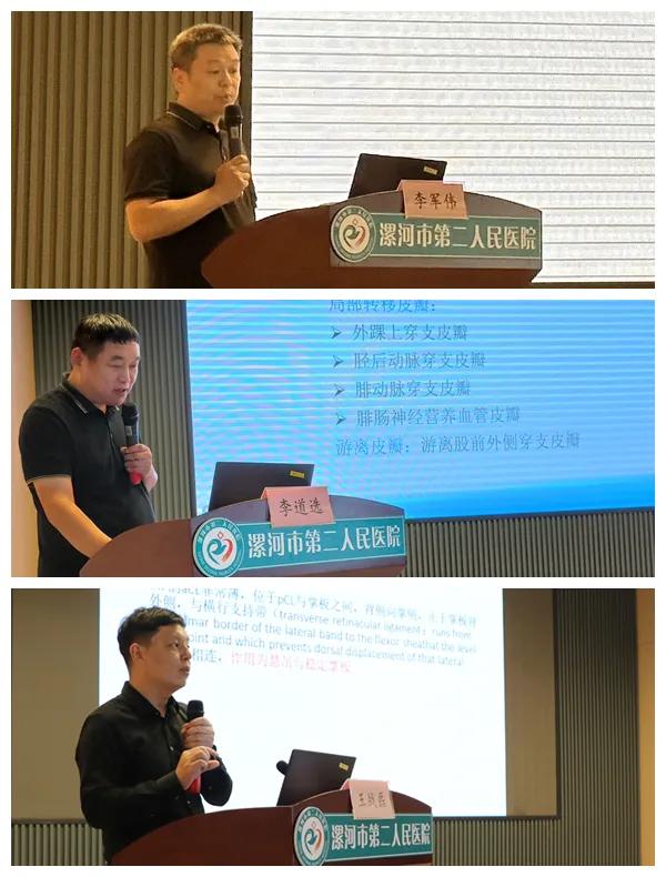 在學(xué)術(shù)交流環(huán)節(jié),河南省人民醫(yī)院手足顯微和創(chuàng)面修復(fù)外科主任謝振軍教授就“慢性創(chuàng)面的皮瓣修復(fù)”,市骨科醫(yī)院骨四科主任李俊明就“穿支皮瓣聯(lián)合Masquelet技術(shù)治療四肢骨及皮膚軟組織缺損”,市二院顯微外科主任沈衛(wèi)軍就“幾種常見的肌腱自發(fā)性離斷”,市中心醫(yī)院創(chuàng)傷骨科主任李軍偉就“超顯微技術(shù)在阿爾茨海默病中的應(yīng)用進(jìn)展”,市骨科醫(yī)院骨四科副主任醫(yī)師李道選就“游離股前外側(cè)穿支皮瓣修復(fù)足踝部皮膚缺損”,市二院顯微外科副主任醫(yī)師王戰(zhàn)磊就“手部側(cè)副韌帶損傷的診療方法”做了專題講座及分享交流。