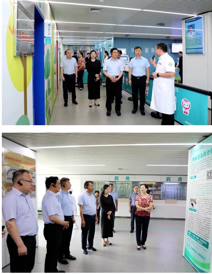 余亞明院長一行在門診大廳聽取了市二院近年來高質(zhì)量發(fā)展情況介紹,并到兒科門診、中醫(yī)針灸科等點位實地參觀。先后聽取了漯河市兒童醫(yī)療中心副主任、市二院小兒呼吸內(nèi)科主任郭先鋒,中醫(yī)針灸科副主任趙劍鋒關(guān)于河南省重點培育學(xué)科兒科和河南省重點中醫(yī)??浦嗅t(yī)針灸科相關(guān)經(jīng)驗和特色做法的講解。