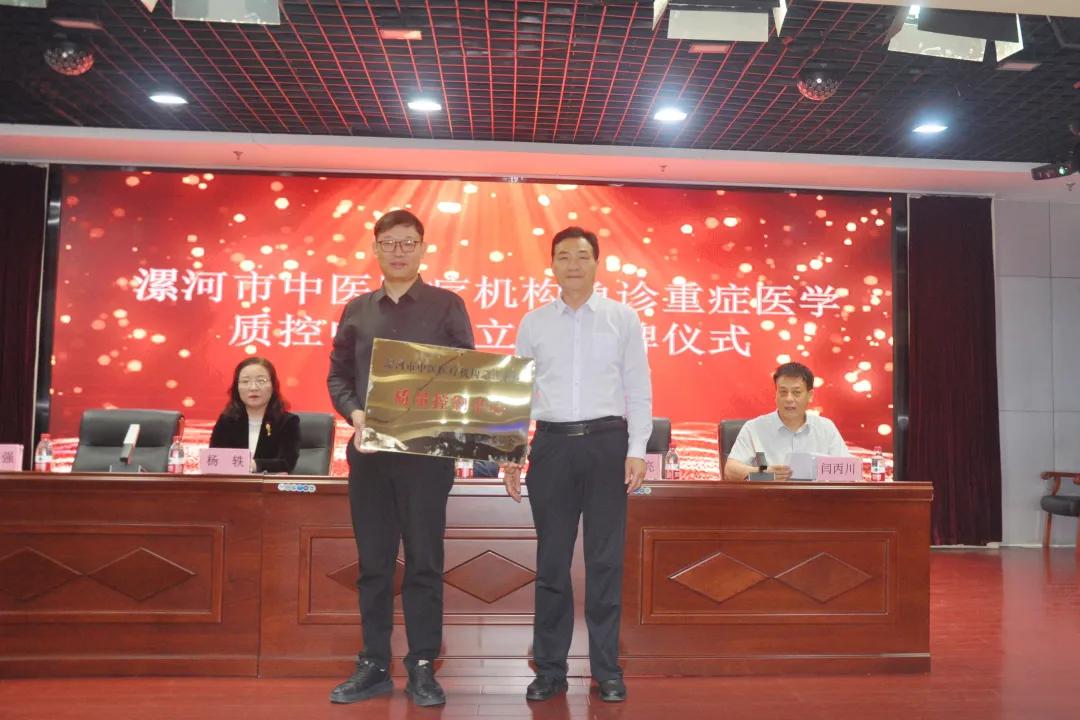 漯河市衛(wèi)健委四級調(diào)研員黃紅亮宣讀《關(guān)于變更市級中醫(yī)醫(yī)療機(jī)構(gòu)急診重癥醫(yī)學(xué)質(zhì)量控制中心主任、副主任、專職秘書名單的通知》并現(xiàn)場授牌。