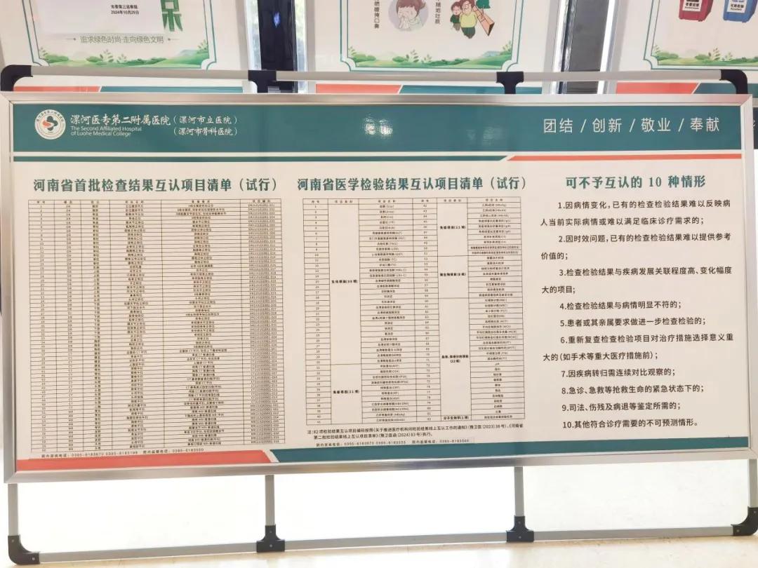 在門診大廳、檢驗大廳、簡易門診等就診區(qū)域和位點擺放了“河南省首批檢查結(jié)果互認項目清單”“河南省醫(yī)學檢驗結(jié)果互認項目清單”等詳細內(nèi)容,持續(xù)加強宣教和講解,切實把好事辦好、實事辦實。