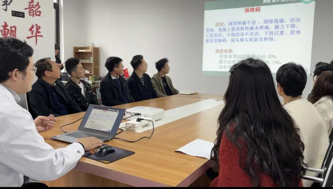 在同步進行的健康科普進企業(yè)現(xiàn)場,市二院中醫(yī)針灸科副主任趙劍鋒針對電商從業(yè)者長期久坐的職業(yè)特點,重點講解了頸椎病、腰椎病等疾病的預(yù)防和應(yīng)對方法,并從日常飲食、科學(xué)的鍛煉方法、緩解疲勞的小妙招、心理壓力的釋放途徑與參會人員進行了分享。參會職工們跟隨講解邊聽邊學(xué),現(xiàn)場氣氛熱烈,活動效果超出預(yù)期。