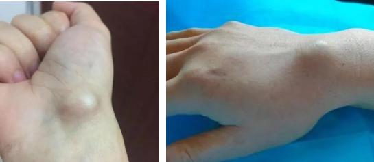 腱鞘囊腫的病因是長期炎癥刺激、慢性勞損導致關節(jié)囊、韌帶、腱鞘中的結締組織發(fā)生退行性粘液性變性,從而形成囊性腫物?;颊叨酁榍鄩涯辏愿嘁?。腱鞘囊腫常呈半球形,隆起于皮下,生長緩慢,大小不一,一般不超過2cm,偶爾也可達8cm。囊腫大小與癥狀輕重無直接關系,而與囊腫張力有關,張力越大,腫物越硬,疼痛越明顯。