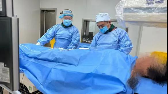 早9時(shí),第一位患者順利進(jìn)入導(dǎo)管室,血管開通后發(fā)現(xiàn)這是一名三支病變的患者——一改術(shù)前“備戰(zhàn)”時(shí)的輕松狀態(tài),此刻的介入手術(shù)室內(nèi)“畫”風(fēng)突變,醫(yī)護(hù)之間使用極簡練的詞語交流,彼此一個(gè)眼神就“秒懂”對(duì)方的意思,這份默契得益于長年累月的配合和并肩作戰(zhàn)。很快,第一臺(tái)手術(shù)順利結(jié)束。