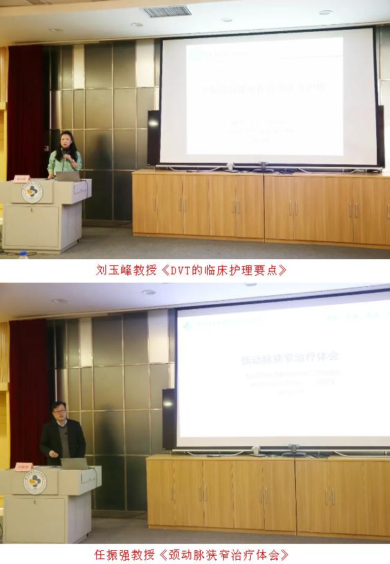 學(xué)術(shù)會(huì)上,宋燕教授、苗仁英教授、楊博教授、付一群教授、牛曉陽教授、劉衛(wèi)萍教授、劉玉峰教授、漯河醫(yī)專二附院神經(jīng)外科副主任振強(qiáng)教授、漯河醫(yī)專二附院急診外科副主任張曉光教授、漯河醫(yī)專二附院急診外科程書強(qiáng)教授等分別圍繞《頸動(dòng)脈狹窄的指南解讀》《淺談?lì)i動(dòng)脈狹窄的外科治療一術(shù)式選擇的進(jìn)階之路》《下肢動(dòng)脈硬化閉塞癥腔內(nèi)治療策略及病例分享》《靜脈曲張的微創(chuàng)化診療》《VTE防控體系構(gòu)建及病例分享》《DVT的臨床護(hù)理要點(diǎn)》《頸動(dòng)脈狹窄治療體會(huì)》《頸深淋巴-靜脈吻合術(shù)治療阿爾茨海默病》《下肢深靜脈血栓的診治》等為題,為現(xiàn)場血管外科同仁進(jìn)行了精彩的學(xué)術(shù)報(bào)告。學(xué)術(shù)會(huì)上,與會(huì)觀眾積極圍繞相關(guān)課題向授課專家提問,并進(jìn)行探討交流,現(xiàn)場始終充滿濃厚的學(xué)術(shù)氛圍。