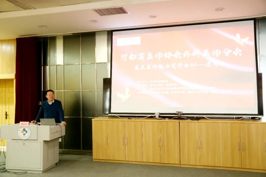 院黨委書記柴運(yùn)洪在致辭中代表漯河醫(yī)專二附院向出席會(huì)議的各位專家教授表示熱烈的歡迎。他指出,血管外科作為一門新興學(xué)科,專注于診斷、治療和管理與血管系統(tǒng)相關(guān)的疾病和病變。隨著心血管疾病負(fù)擔(dān)的增加、血管疾病發(fā)病率的上升、技術(shù)不斷進(jìn)步以及中國血管外科領(lǐng)域的崛起,血管外科在未來將扮演更加重要的角色,同時(shí)也為醫(yī)學(xué)研究和創(chuàng)新提供廣闊的發(fā)展空間,充分發(fā)揮行業(yè)帶頭人的示范引領(lǐng)作用。我院血管外科正處于快速發(fā)展的階段,作為河南省醫(yī)師協(xié)會(huì)外科分會(huì)基層醫(yī)師能力提升培訓(xùn)會(huì)議的首站,我們倍感榮幸和鼓舞。他希望以鄭州大學(xué)第一附屬醫(yī)院血管外科宋燕教授工作室揭牌為契機(jī),參會(huì)人員能夠在專家教授的傾情分享下,共同學(xué)習(xí)血管外科的新進(jìn)展,激發(fā)學(xué)科發(fā)展的新思路,不斷提升自己在血管外科領(lǐng)域的執(zhí)業(yè)水平和服務(wù)質(zhì)量。