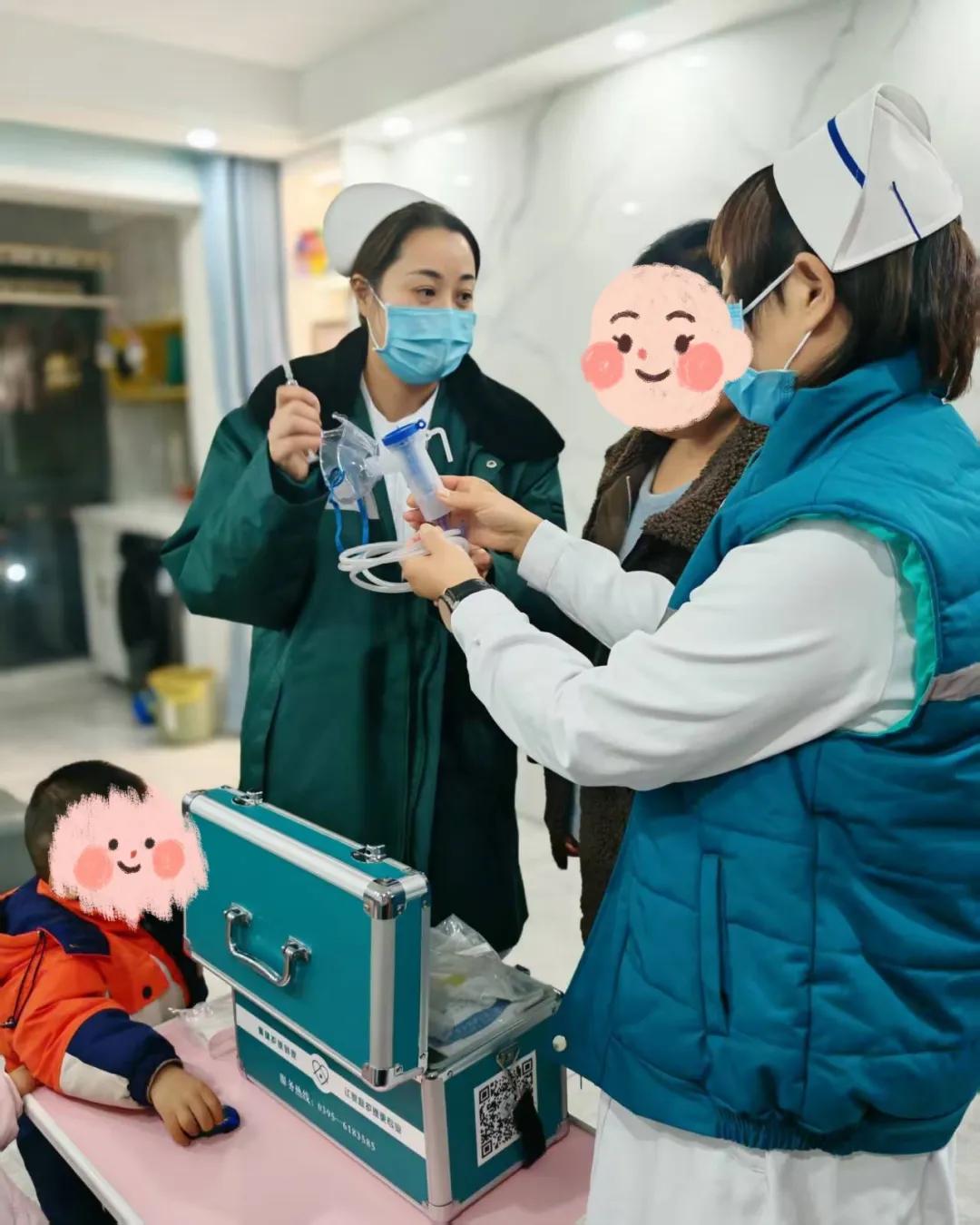 了解完患兒病情后,楊護士按照無菌操作原則配置好霧化吸入的藥物,趙護士長詳細(xì)講解了霧化吸入的操作步驟及注意事項,并確保家長熟練掌握。