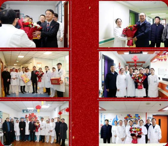 1月29日正值乙巳蛇年大年初一,漯河醫(yī)專二附院(漯河市骨科醫(yī)院、漯河市立醫(yī)院)黨委書記柴運洪、院長王齊超及院領導吳廣良、曹鵬克、鄭建新、劉國鋒、吳威等分別帶領各職能科室負責人深入各病區(qū)、各科室、陰陽趙分院等處看望慰問節(jié)日期間依然堅守崗位的廣大干部職工,為每一位堅守崗位的醫(yī)護人員和工作人員送上新春的美好祝福與誠摯的慰問。