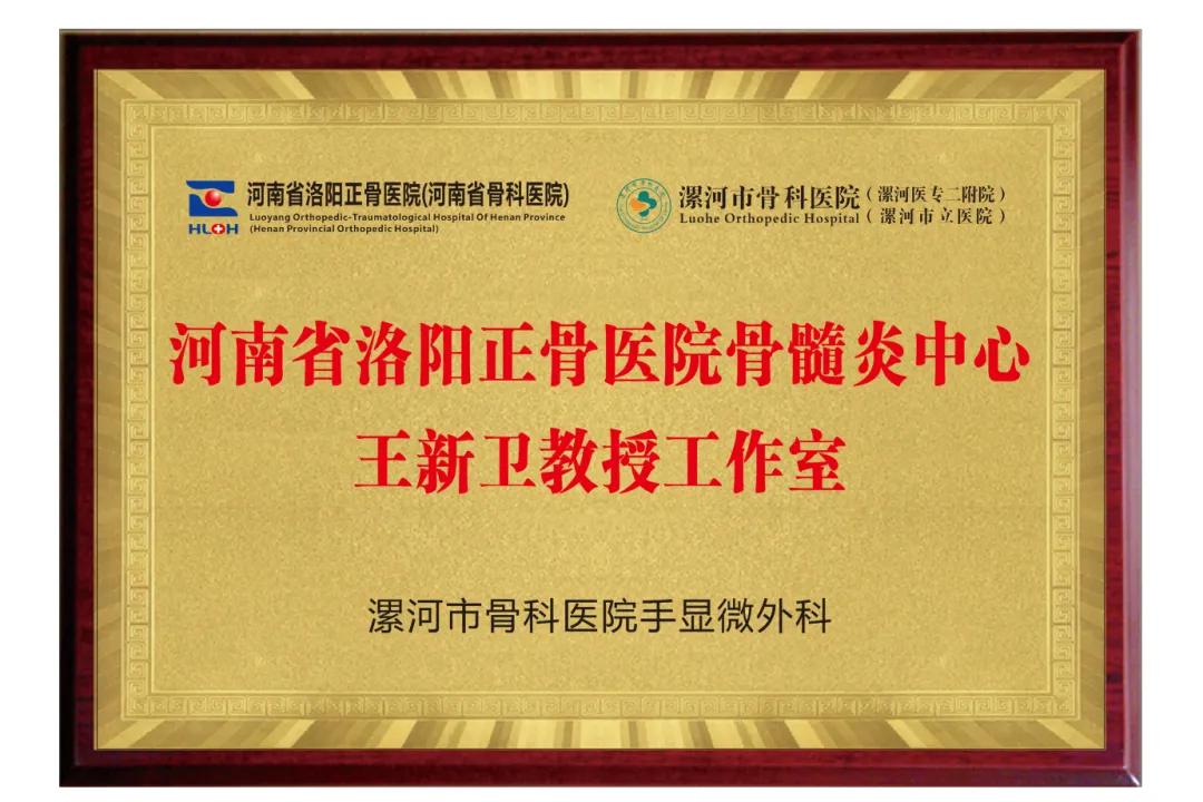 王新衛(wèi)教授于2002年率先在全國三級非盈利性醫(yī)院中成立骨髓炎???。2006年骨髓炎科被河南省中醫(yī)藥管理局確定為河南省重點專科建設單位,2011年順利通過驗收。2007年骨髓炎科被確定為國家中醫(yī)藥管理局"十一五"重點???,并擔任國家中醫(yī)藥管理局"十一五"重點專病"附骨疽"(慢性骨髓炎)協(xié)作組組長單位。組織完成了國家中醫(yī)藥管理局重點項目"附骨疽"(慢性骨髓炎)臨床診療方案的制定(慢性骨髓炎中醫(yī)診療標準),組織完成了國家中醫(yī)藥管理局"附骨疽"(慢性骨髓炎)臨床路徑的制定,由中國中西醫(yī)結合學會驗收發(fā)布。