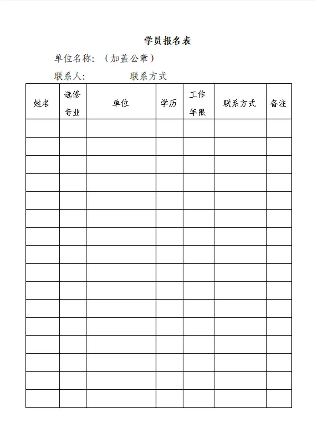 附:學(xué)員報(bào)名表(供單位統(tǒng)一報(bào)名用)