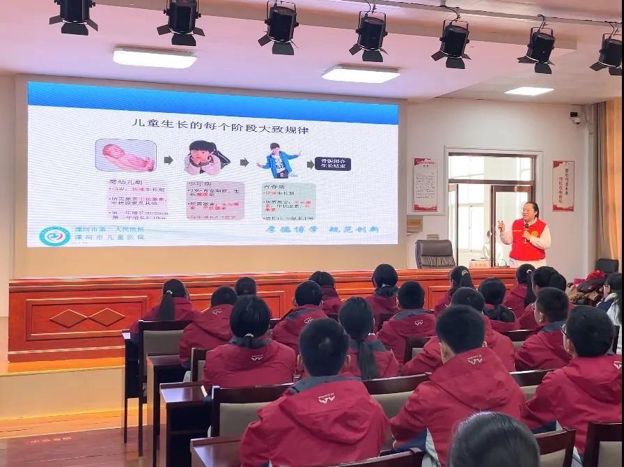 活動(dòng)現(xiàn)場(chǎng),市二院兒童保健科副主任李錦璐就《生活中長(zhǎng)高的秘訣》,特別強(qiáng)調(diào)了身體健康的重要性,詳細(xì)介紹了兒童身高發(fā)育的成因、危害以及預(yù)防措施。引導(dǎo)同學(xué)們樹(shù)立正確的飲食觀念,鼓勵(lì)大家多參與戶外活動(dòng),保持健康的生活方式;副主任醫(yī)師郭鳳仙圍繞《青少年心理健康》針對(duì)心理行為異常問(wèn)題,以通俗易懂的語(yǔ)言幫助同學(xué)們正確認(rèn)識(shí)青春期可能出現(xiàn)的心理變化,引導(dǎo)大家學(xué)會(huì)積極應(yīng)對(duì)學(xué)習(xí)和生活中的壓力與挑戰(zhàn),保持樂(lè)觀向上的心態(tài)。