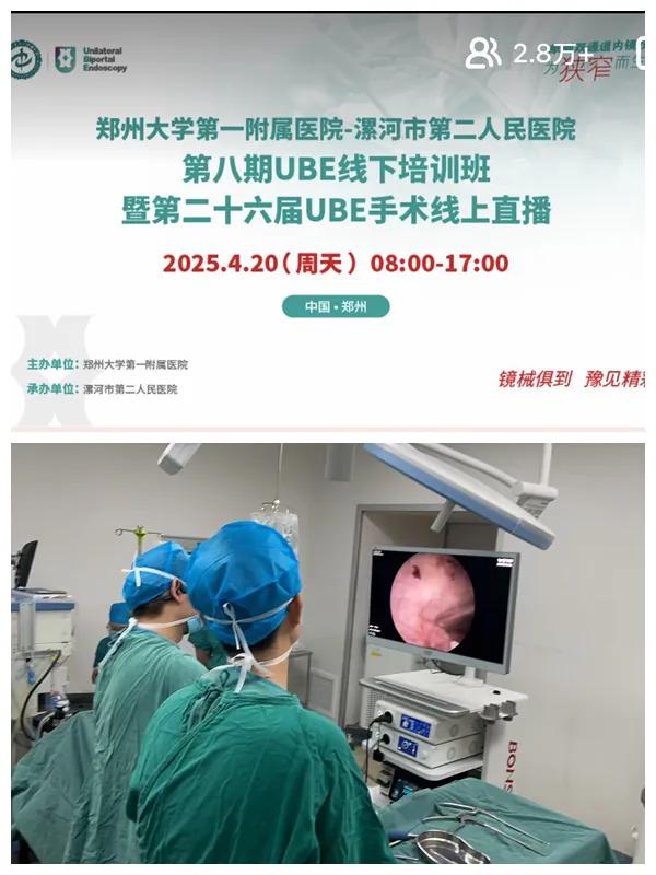 據(jù)悉,鄭州大學(xué)第一附屬醫(yī)院骨科團(tuán)隊(duì)已經(jīng)連續(xù)開展了25屆UBE手術(shù)線上直播、七期線下培訓(xùn)活動(dòng)。此次將培訓(xùn)班放在市二院舉辦,是希望通過交流互動(dòng),將UBE技術(shù)的最新理念和操作技巧在漯河扎根。