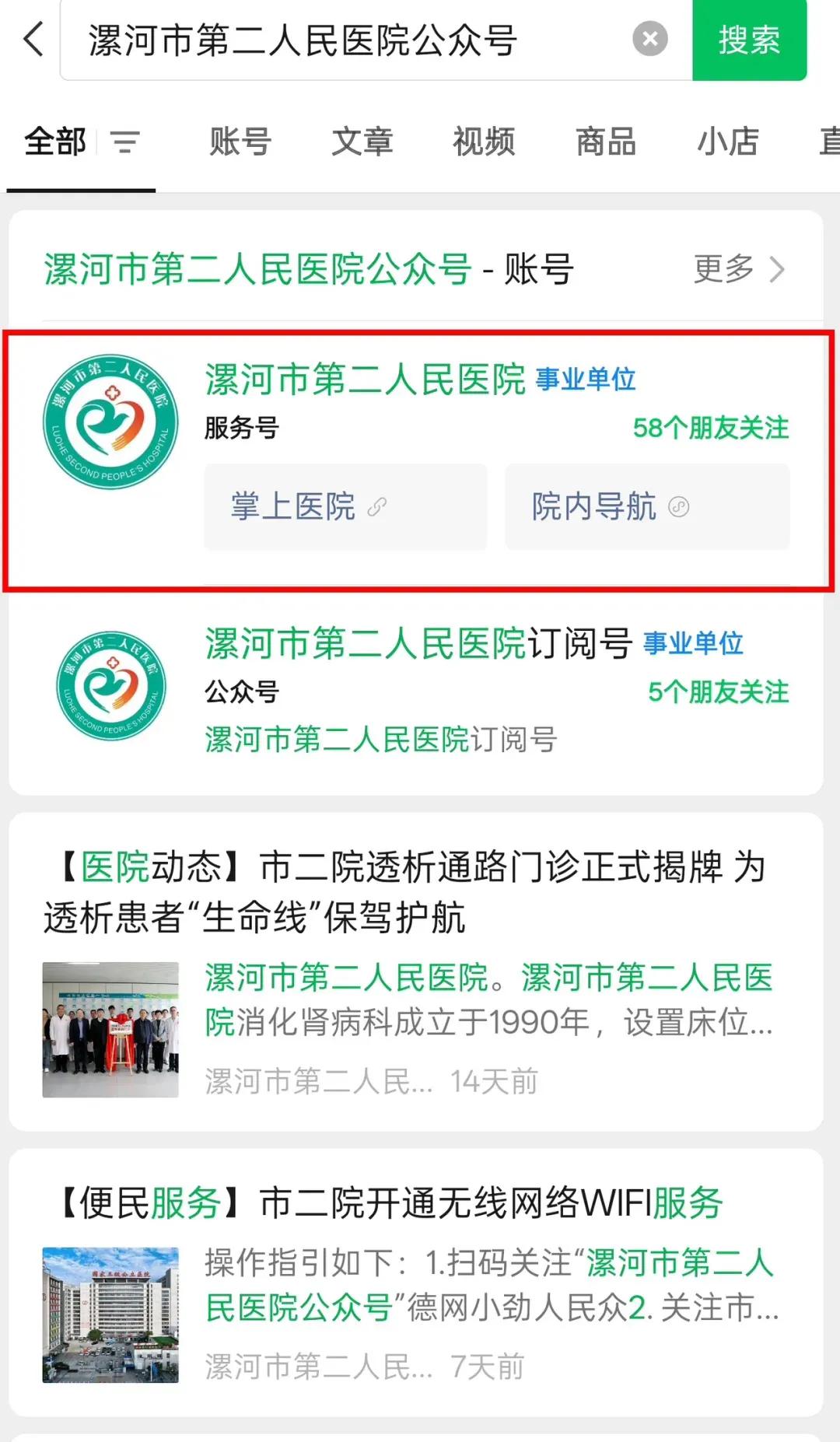 微信搜索“漯河市第二人民醫(yī)院”公眾號