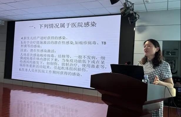 授課現(xiàn)場,感控科主任楚巧紅以《醫(yī)院感染診斷標準與案例分析》為題為近百名醫(yī)務人員進行分享。楚巧紅主任結合多年臨床經(jīng)驗,以通俗易懂的語言、生動的案例,圍繞感染分類、感染的診斷原則、各部位醫(yī)院感染診斷、常見的醫(yī)院感染部位、醫(yī)院肺炎(NP)流行病學等內容展開講解。重點剖析了多重耐藥菌感染、呼吸機相關肺炎等疑難案例的診斷流程。隨后,參會人員圍繞內容及實際臨床工作中遇到的實際問題進行提問,楚巧紅主任系統(tǒng)解答,反響熱烈。(盧 闖 韓書環(huán) 劉 旭 袁錦鈺)