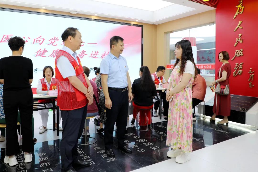 6月25日上午,市二院黨委書記魏松、紀(jì)委書記孟德陽帶領(lǐng)門診黨支部黨員志愿者到新華街社區(qū)開展“醫(yī)心向迎七一 健康服務(wù)進(jìn)社區(qū)”義診宣傳活動,以實際行動向黨的生日獻(xiàn)禮。