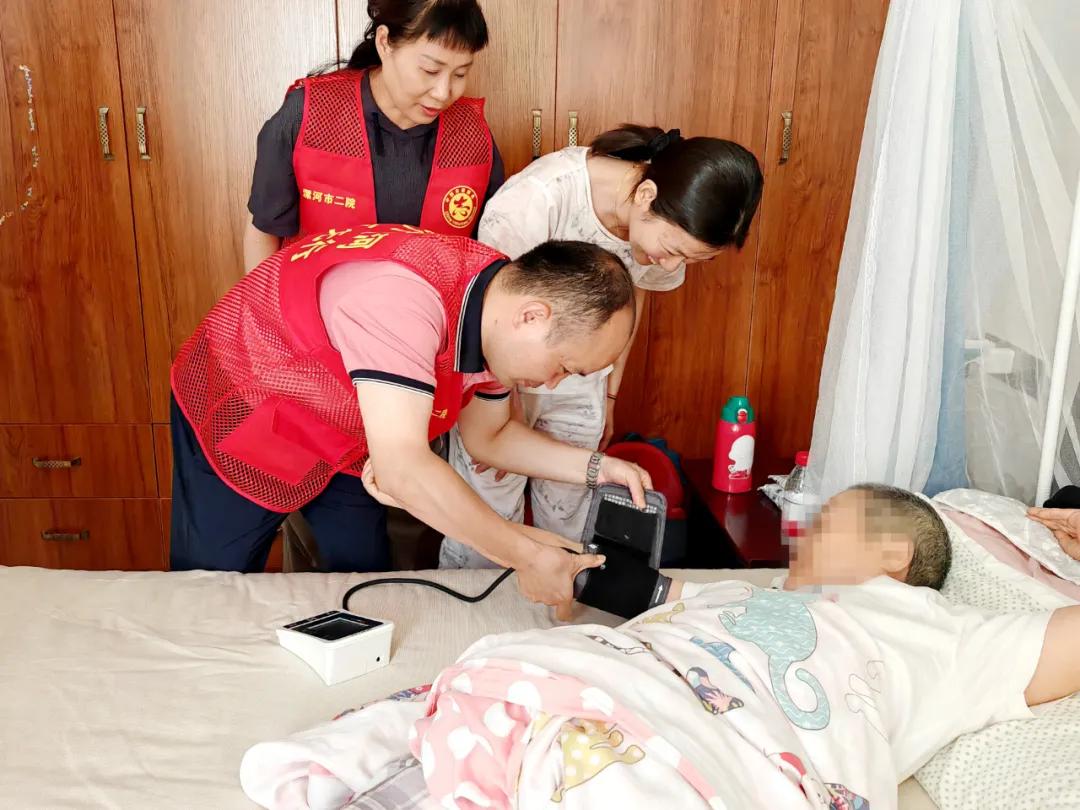 許阿姨患有心臟病、高血壓及腰椎疾病多年,天氣炎熱她的血壓一直不穩(wěn)定,家屬通過(guò)微信群向科室副主任楊光咨詢。7月16日,楊光在了解此情況后,與李慧新主任商量,決定帶醫(yī)療團(tuán)隊(duì)一起前往許阿姨家中,為她進(jìn)行血壓測(cè)量、心臟聽(tīng)診等檢查,對(duì)其日常生活中的注意事項(xiàng)進(jìn)行了詳細(xì)的指導(dǎo)。同時(shí),還對(duì)許阿姨的用藥方案和康復(fù)計(jì)劃進(jìn)行了相應(yīng)的調(diào)整。