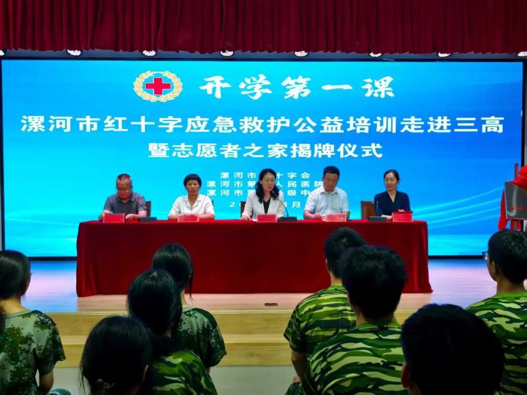 8月21日上午,漯河市紅十字應(yīng)急救護(hù)公益培訓(xùn)進(jìn)校園暨志愿者之家揭牌儀式在市第三高級中學(xué)舉行,市紅十字會黨組書記、常務(wù)副會長孫潁華,市教育局黨組成員、副局長郭俊偉,市二院黨委副書記、院長胡海英,市紅十字會黨組成員、副會長李世杰,市二院紅十字志愿服務(wù)隊(duì)代表、漯河三高紅十字應(yīng)急救護(hù)社團(tuán)師生代表等參加本次活動。