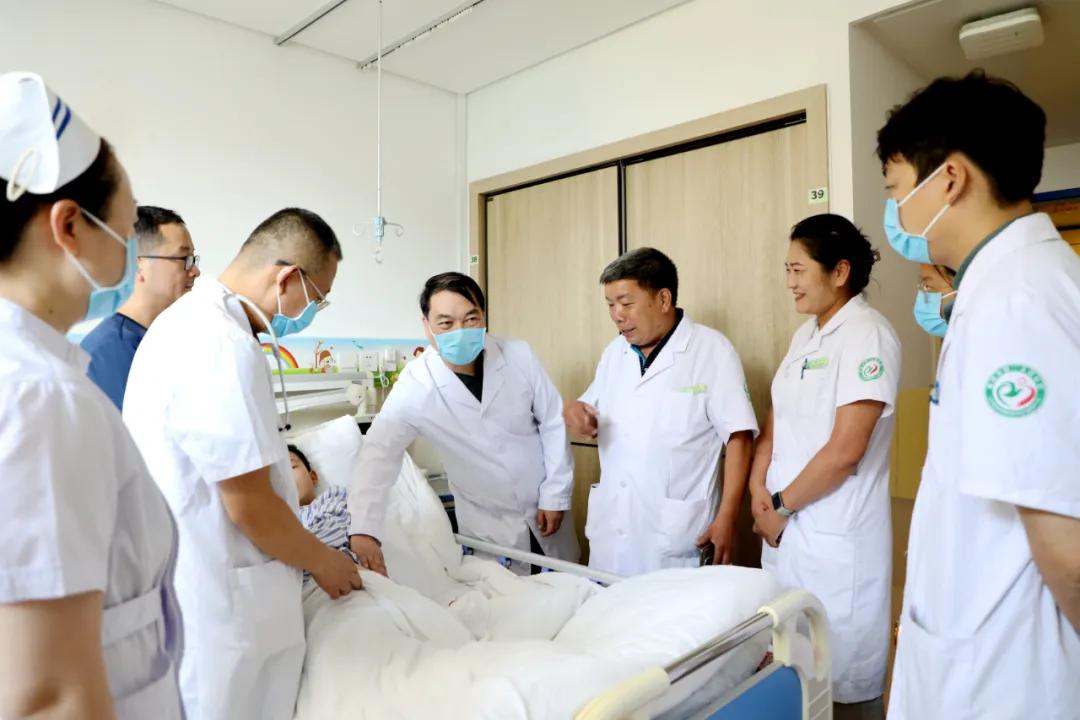 為提升區(qū)域兒科診療水平,惠及本地復(fù)雜、疑難、特色??撇』純?,8月28日,市二院 市兒童醫(yī)院特邀河南省兒童醫(yī)院新生兒外科王獻(xiàn)良主任、內(nèi)分泌遺傳代謝科病區(qū)劉曉景主任、兒童重癥醫(yī)學(xué)科高劉炯主任蒞臨,開展多學(xué)科聯(lián)合查房、疑難病例討論及義診活動(dòng)。黨委書記魏松帶領(lǐng)兒科團(tuán)隊(duì)主任、護(hù)士長(zhǎng)對(duì)前來義診的專家表示熱烈歡迎。