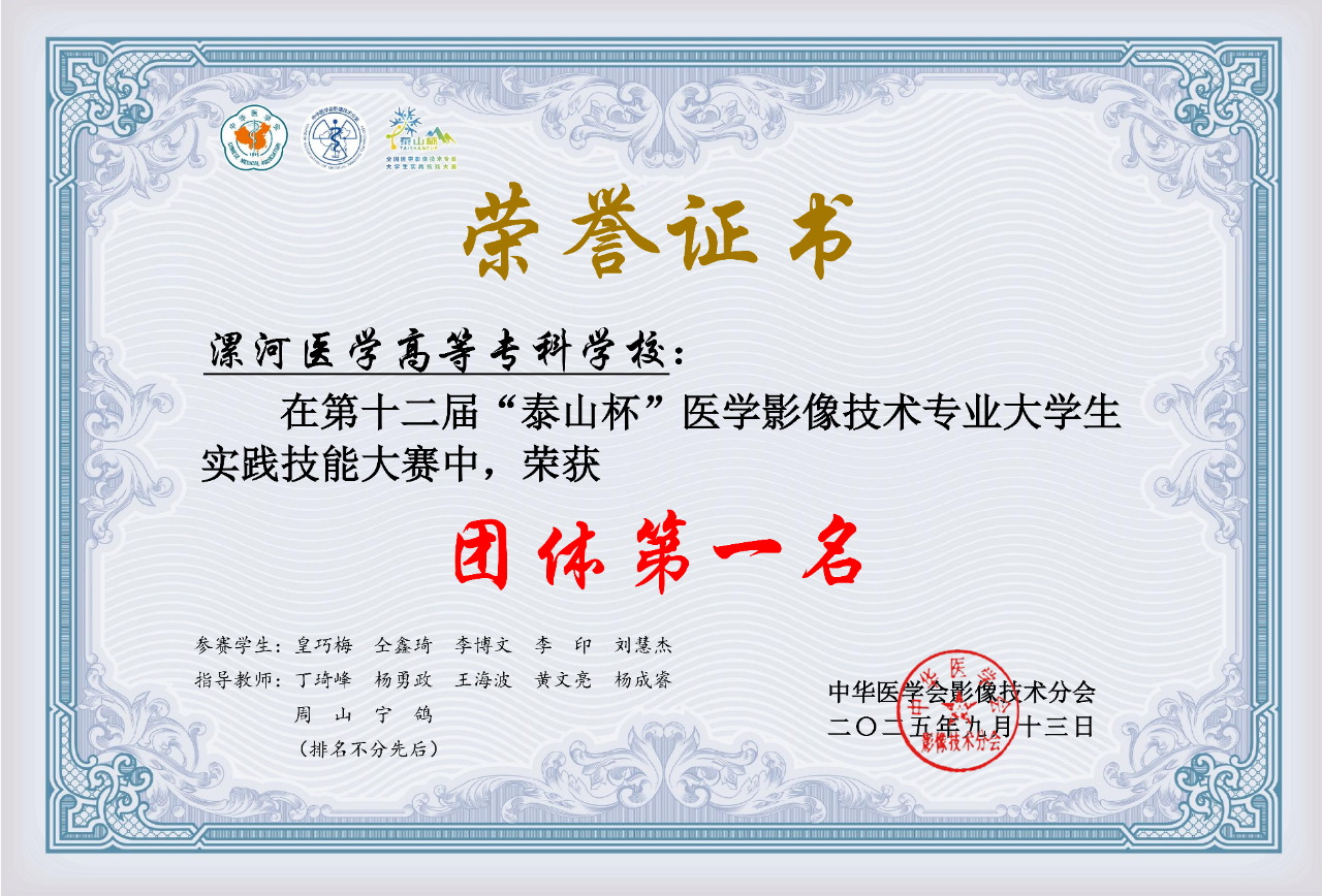 9月12日至14日,2025年第十二屆“泰山杯”全國醫(yī)學(xué)影像技術(shù)專業(yè)大學(xué)生實(shí)踐技能大賽暨第八屆醫(yī)學(xué)影像技術(shù)專業(yè)教師教學(xué)創(chuàng)新大賽在山東淄博舉辦。在本次國家級(jí)大賽中,漯河醫(yī)專二附院(漯河市骨科醫(yī)院、漯河市立醫(yī)院)在醫(yī)學(xué)影像科周山主任帶領(lǐng)下,在所有學(xué)生實(shí)踐技能比賽及教師教學(xué)比賽中均獲優(yōu)異獎(jiǎng)項(xiàng)。
