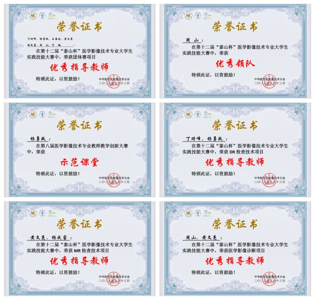 其中學(xué)生皇巧梅、李博文、李印分別榮獲DR、MRI檢查技術(shù)項(xiàng)目和醫(yī)學(xué)影像診斷項(xiàng)目第一名,劉慧杰、仝鑫琦、胡巧同學(xué)分別榮獲超聲、CT檢查技術(shù)和醫(yī)學(xué)圖像處理項(xiàng)目第二名,楊勇政老師在教師教學(xué)比賽中榮獲優(yōu)秀創(chuàng)新大賽示范課堂,最終參賽團(tuán)隊(duì)以優(yōu)異的綜合成績(jī)摘得團(tuán)體項(xiàng)目競(jìng)賽第一名的桂冠,優(yōu)秀的成績(jī)贏得了大賽評(píng)委和參賽同道的廣泛贊譽(yù)。這也是繼2018年首次參加該賽事以來,漯河醫(yī)專二附院醫(yī)學(xué)影像教學(xué)團(tuán)隊(duì)取得的又一優(yōu)異成績(jī)。