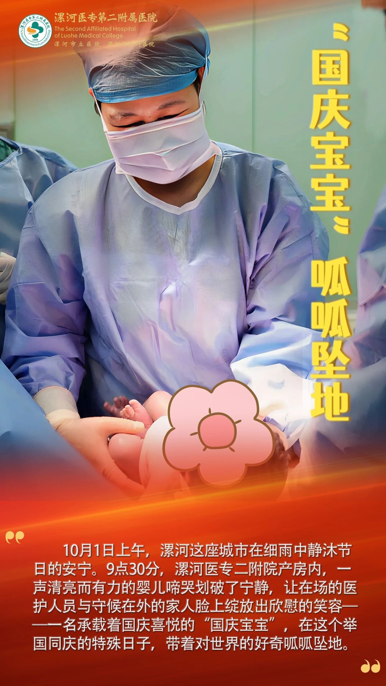 10月1日上午,漯河這座城市在細(xì)雨中靜沐節(jié)日的安寧。9點(diǎn)30分,漯河醫(yī)專二附院產(chǎn)房?jī)?nèi),一聲清亮而有力的嬰兒啼哭劃破了寧靜,讓在場(chǎng)的醫(yī)護(hù)人員與守候在外的家人臉上綻放出欣慰的笑容——一名承載著國(guó)慶喜悅的“國(guó)慶寶寶”,在這個(gè)舉國(guó)同慶的特殊日子,帶著對(duì)世界的好奇呱呱墜地。