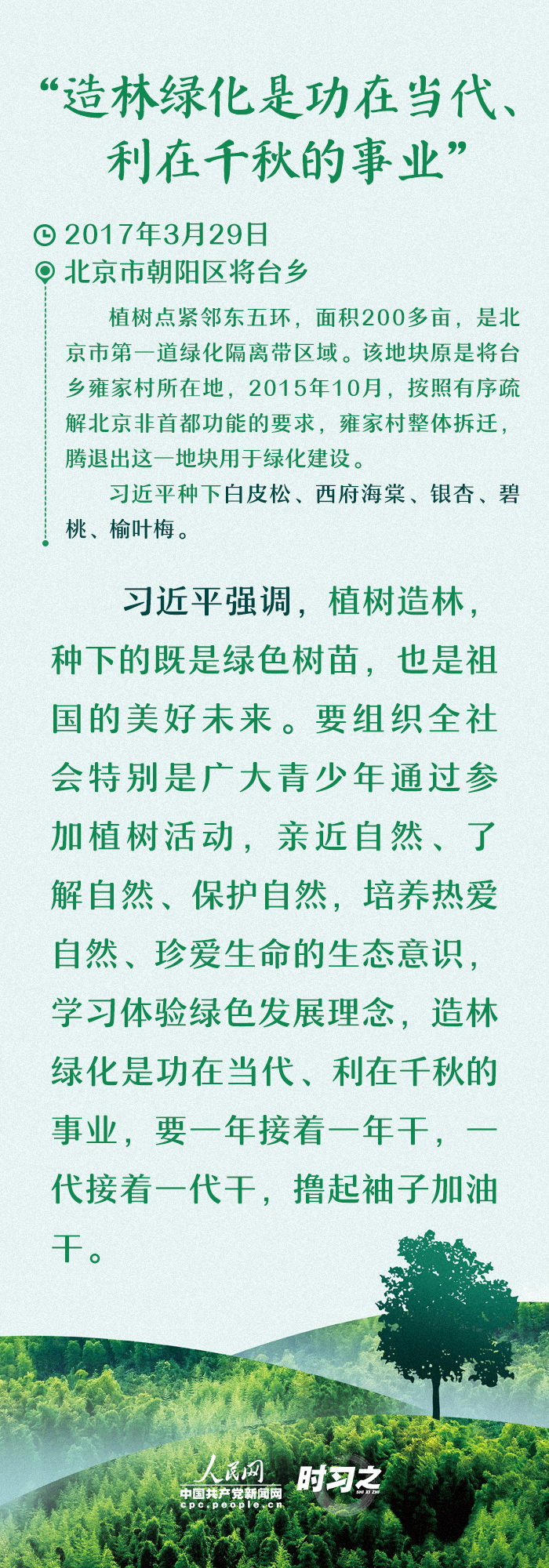 春風吐綠、草木初萌,又是一年植樹節(jié)。“造林綠化是功在當代、利在千秋的事業(yè)” “前人栽樹,后人乘涼”……黨的十八大以來,習近平總書記每年都會參加義務(wù)植樹活動,并多次談到植樹造林的重大意義。過去九年間,習近平總書記都在哪里植樹?種了哪些樹?每次植樹都講了些什么,一起來回顧。