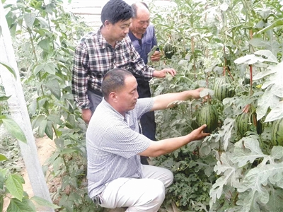 2009年,徐電超帶領(lǐng)一部分群眾成立了大徐村富農(nóng)瓜果蔬菜種植合作社,并先后組織群眾到外地參觀學(xué)習(xí),到山東壽光等地實(shí)地考察大棚種植情況,最后決定發(fā)展大棚西瓜和大棚蔬菜。當(dāng)時(shí),村民不富裕,得知種植大棚西瓜每畝地需要投資1萬(wàn)元,許多人猶豫了。徐電超講道理、舉例子,鼓勵(lì)村民,堅(jiān)定了村民發(fā)展大棚瓜果、蔬菜的決心。
