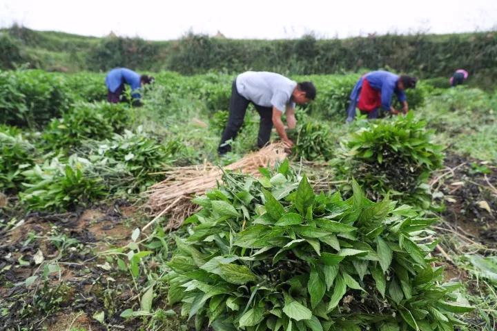 △2017年10月,貴州丹寨縣農(nóng)業(yè)產(chǎn)業(yè)扶貧項目——板藍(lán)根種植喜獲豐收。(圖自視覺中國)