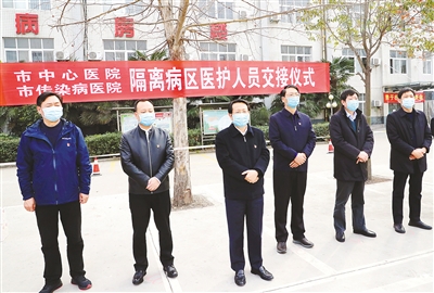 • 市中心醫(yī)院市傳染病醫(yī)院隔離病區(qū)醫(yī)護(hù)人員實現(xiàn)首次換崗 蒿慧杰劉尚進(jìn)等出席交接儀式