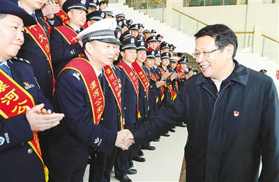 蒿慧杰指出,設立“中國人民警察節(jié)”,充分體現了習近平總書記和黨中央、國務院對人民警察隊伍的關心關懷。舉行慶祝首屆中國人民警察節(jié)暨2020漯河公安職業(yè)榮譽儀式,是貫徹落實黨中央、國務院決策部署的實際行動,也是市委、市政府對全市人民警察隊伍的充分肯定和高度褒獎。 近年來,全市公安機關在市委、市政府的堅強領導下,堅持以習近平新時代中國特色社會主義思想為指導,圍繞中心、服務大局,忠實履行維穩(wěn)第一責任,主動服務發(fā)展第一要務,始終走在防風險、保安全、護穩(wěn)定、促發(fā)展的最前沿,在安保維穩(wěn)、掃黑除惡、疫情防控、脫貧攻堅、環(huán)保攻堅、創(chuàng)文攻堅等重大工作中,展現了公安風采、貢獻了公安力量,也涌現出一大批先進集體和先進個人,充分體現了警察隊伍的政治品格、公仆情懷、擔當精神。我代表市委、市政府向受表彰的先進模范表示熱烈的祝賀,向全市廣大公安民警及其家屬致以節(jié)日的問候和崇高的敬意。當前,我市已進入全面推進社會主義現代化建設的新階段,希望全市公安機關和廣大公安民警以“中國人民警察節(jié)”的設立為新起點,深入學習貫徹習近平總書記關于做好公安工作的重要講話、訓詞和指示批示精神,牢記“對黨忠誠、服務人民、執(zhí)法公正、紀律嚴明”的新時代公安工作總要求,大力弘揚英模精神、繼承優(yōu)良傳統,以高度的政治責任感、良好的精神狀態(tài)、扎實的工作作風,全力以赴做好維護國家安全和社會穩(wěn)定各項工作,為落實新時代漯河經濟社會發(fā)展“五個一”總體思路營造良好的社會環(huán)境,以優(yōu)異成績迎接中國共產黨成立100周年。各級黨委、政府要進一步關心和支持公安工作,加大綜合保障力度,落實從優(yōu)待警舉措,讓廣大公安民警工作安心、生活舒心。
