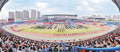10月17日,市第九屆運(yùn)動(dòng)會(huì)、第七屆職工運(yùn)動(dòng)會(huì)、市直機(jī)關(guān)運(yùn)動(dòng)會(huì)暨全民健身大會(huì)在市體育中心隆重開幕。記者 王曉東 攝
